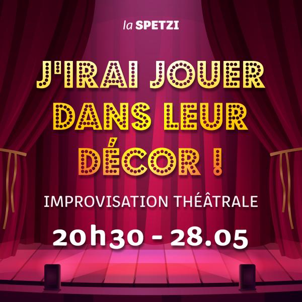 Les comédiens et comédiennes d'improvisation de La Spetzi se lanceront dans une aventure théâtrale unique pour le spectacle "J'irai jouer dans leur décor". Ils découvriront le soir-même le décor de la pièce "J'y suis j'y reste", prêté le jour de relâche par la compagnie Passeurs de Lune, et s'en inspireront pour improviser une pièce d'environ une heure. Mais ce qui rend le spectacle vraiment spécial, c'est que c'est le public qui aura le pouvoir de façonner l'histoire. Vous pourrez décider de l'interprétation du décor, des relations entre les personnages, de leur métier, de leurs caractéristiques... Tout sera entre vos mains !