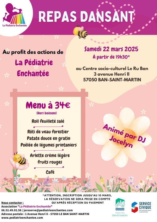 La Pédiatrie Enchantée vous invite à son repas dansant le samedi 22 mars ! ![]()