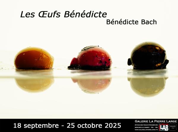 Avec Les Œufs Bénédicte, l’artiste nous emmène dans un processus de transformation, dont on ne sait pas s’il est réel ou imaginaire. Bien sûr, dans la poésie de Bénédicte Bach, il subsiste toujours une place pour des reflets, des matières magnifiées, le mouvement de l’eau et son appétence pour les vagues, les métamorphoses. Les corps changent de nature, il y a toujours quelque chose qui chrysalide. Que reste-t-il alors ? Des dents de lait, et autres matières organiques dans un processus de micro culture dans des boites de Pétri. Les choses meurent, s’échappent, mais il en résulte toujours quelque chose, un précipité, un zeste, une envolée. Et il y a quelque chose de joyeux dans cette macabre débandade. Une cavalcade colorée.