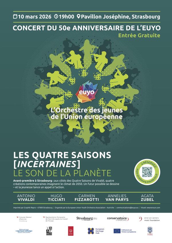 Le concert est interprété par l’ensemble à cordes de l’Orchestre des jeunes de l’Union européenne (EUYO), composé des musiciennes et musiciens les plus remarquables de leur génération à travers l’Europe. Ambassadeur culturel de l’UE, l’orchestre célèbre ses 50 ans en 2026.