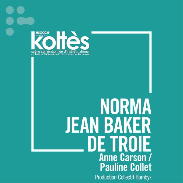 Poème tragique sur le pouvoir destructeur de la beauté, Norma Jeane Baker de Troie, d'après Hélène d'Euripide, superpose deux figures mythiques, Hélène de Troie et Marilyn Monroe, née Norma Jeane Baker, un seul et même destin entre la cité antique et New York. Hélène et Marilyn, sont sœurs jumelles unies par une force mytho-poétique, icônes de beauté, objets de fascination et destin unique malgré les quelques milliers d'années qui les séparent.