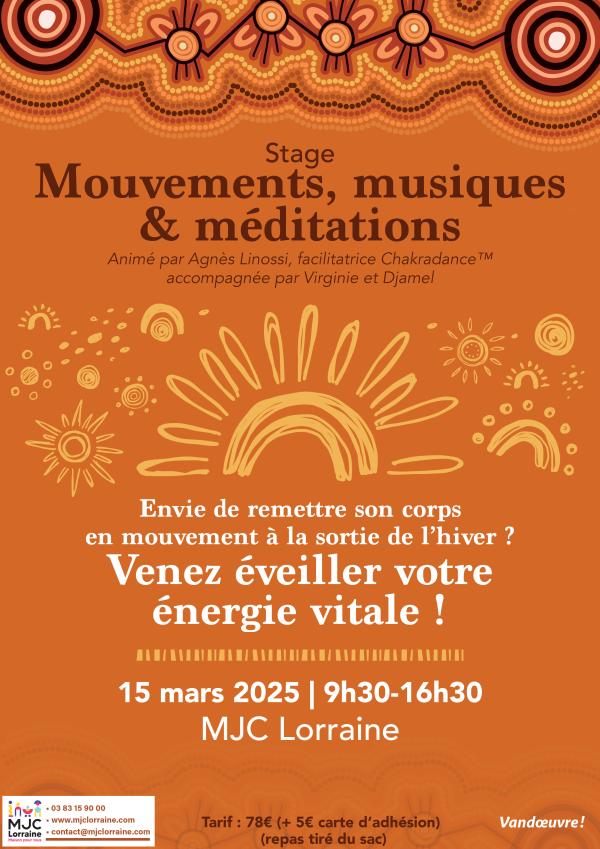 Animé par Agnès Linossi, ce stage vous invite à réveiller votre énergie vitale à travers le mouvement libre, la musique immersive et la méditation guidée, en explorant l’harmonisation des chakras.
