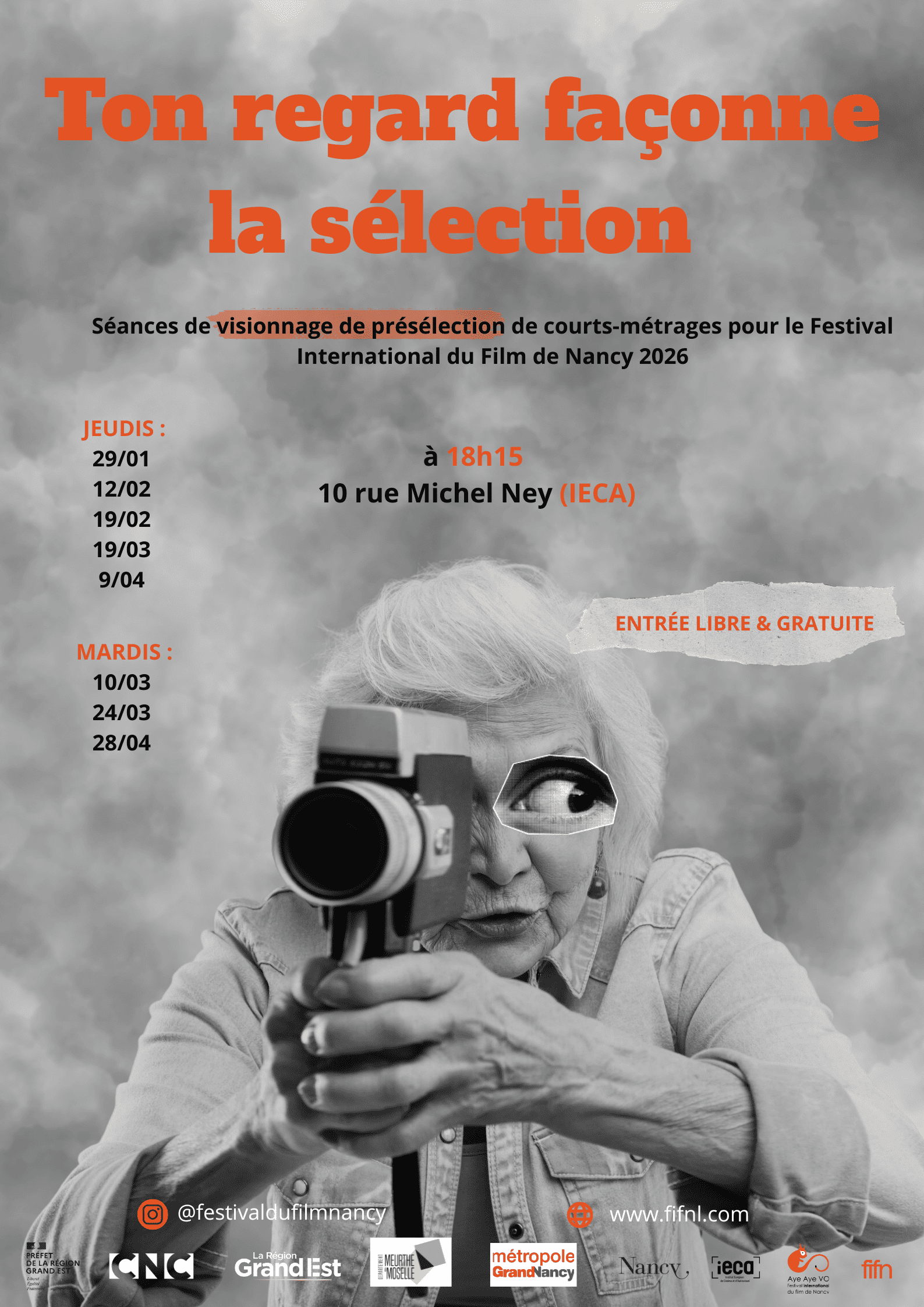 Les courts-métrages retenus seront susceptibles d’être diffusés à l’occasion du Festival International du Film de Nancy cet été. Autrement dit, votre regard façonne la sélection !