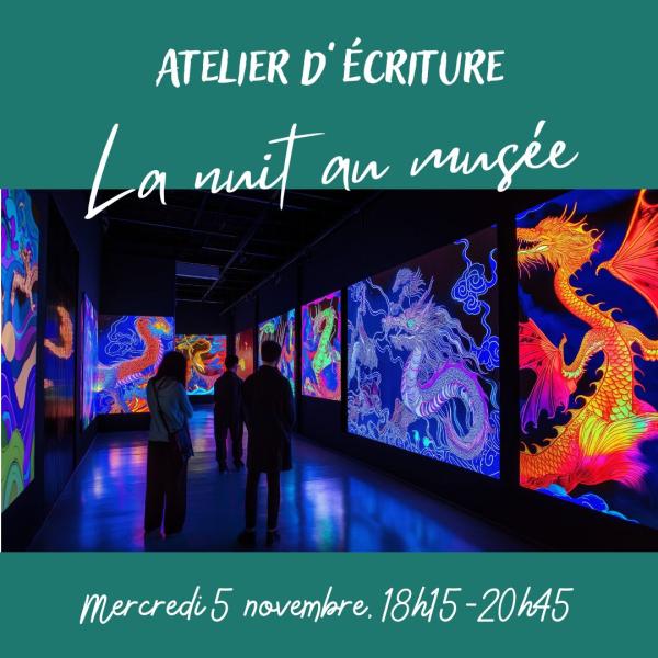 Le mercredi 5 novembre 2025 de 18h15 à 20h45 - Atelier d'écriture : "La nuit au musée"